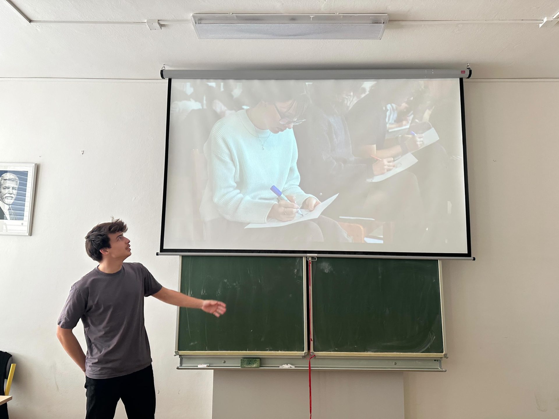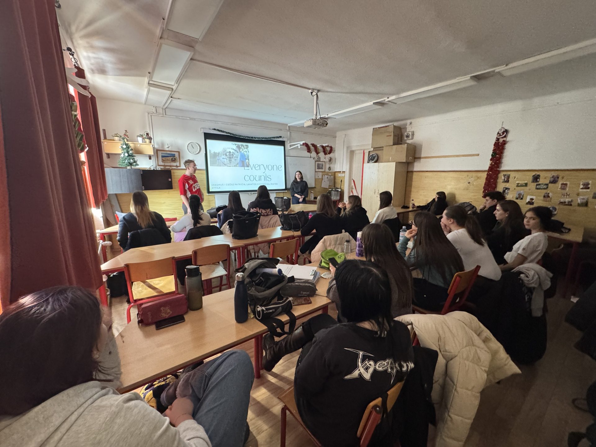 Dissemination by Agata and Samuel at Jiraskovo Gymnasium for 30 people.