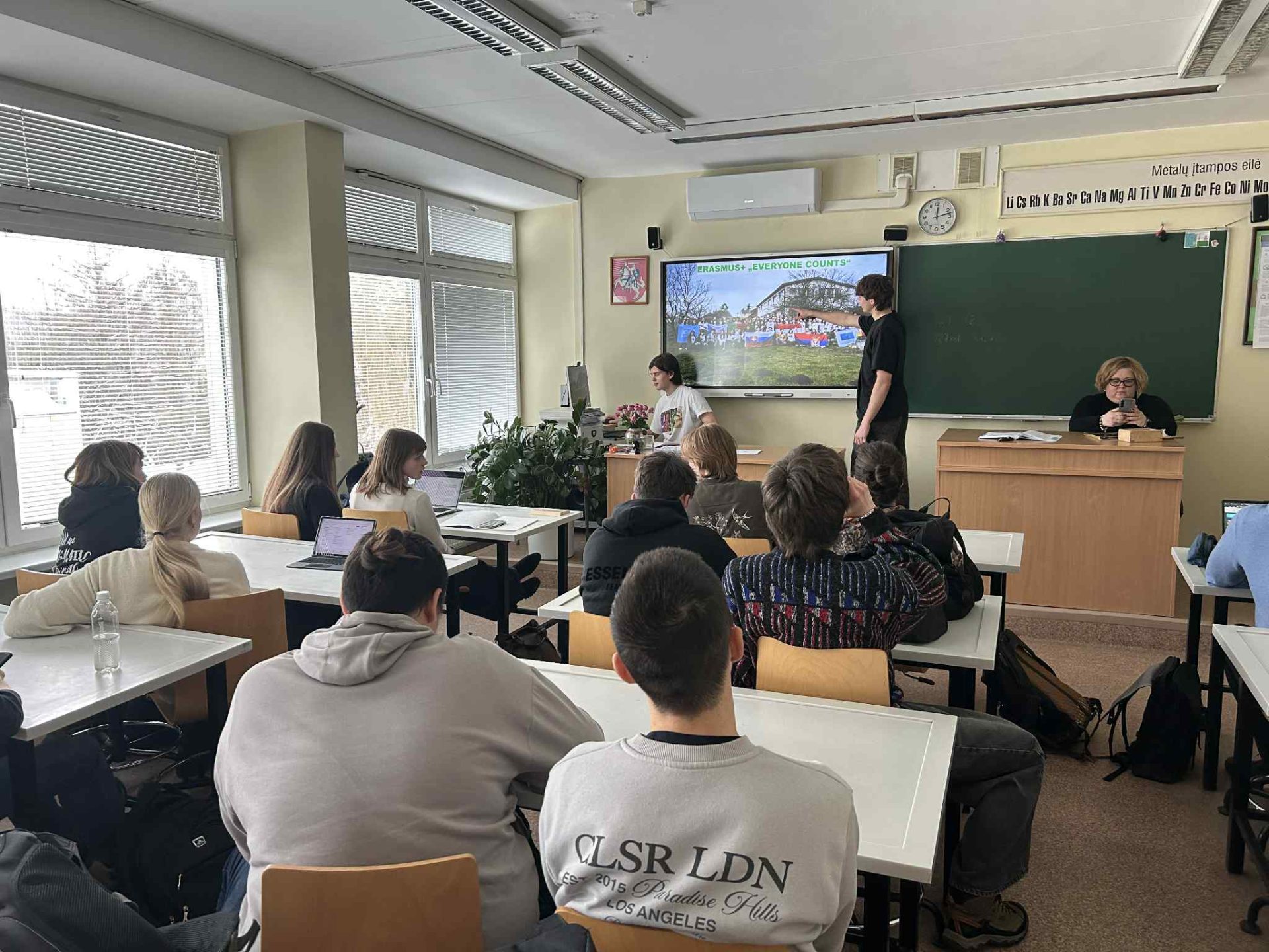 Dissemination by Antanas and Valentinas at Vilniaus Zirmunu Gimnazija for 16 people.