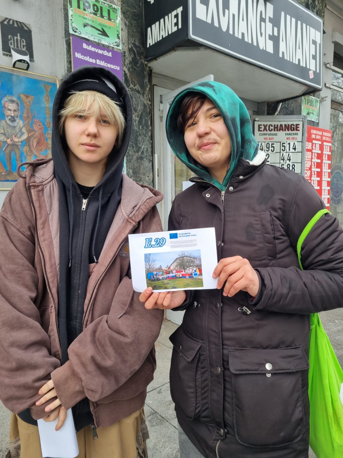 Dissemination by Miky around Bucharest, reaching 29 people. He distributed some flyers around the city while explaining his experience.