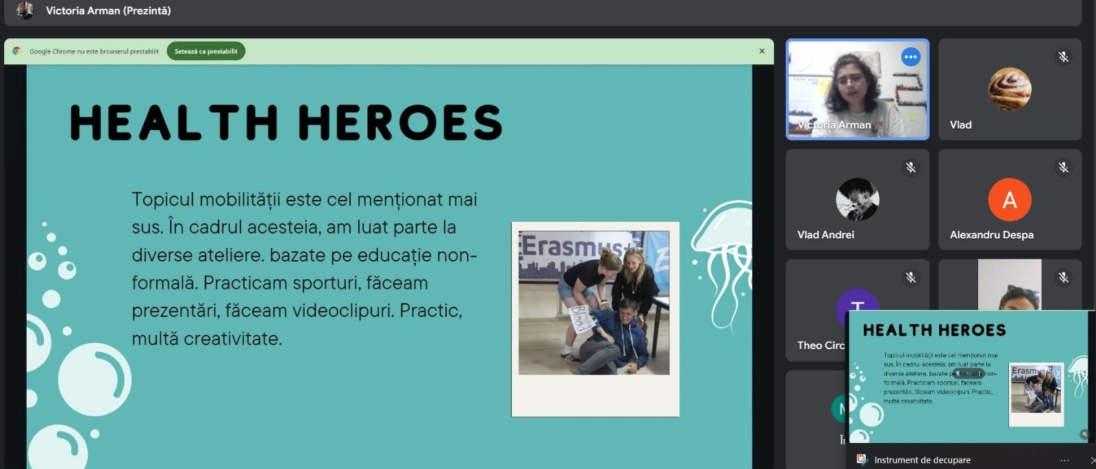 Victoria Arman and the other participants from the romanian group organized an online meeting with their classmates during summer.