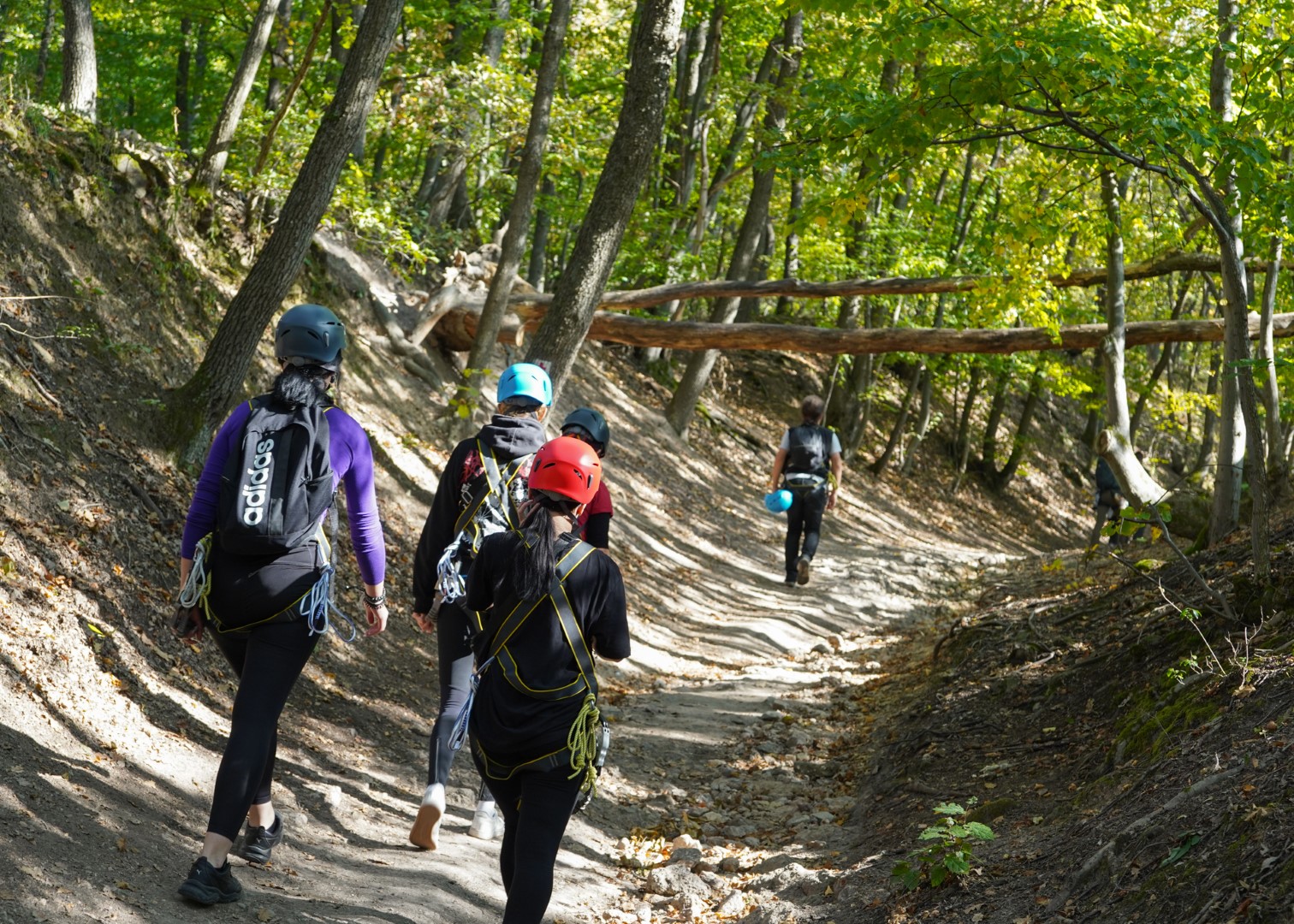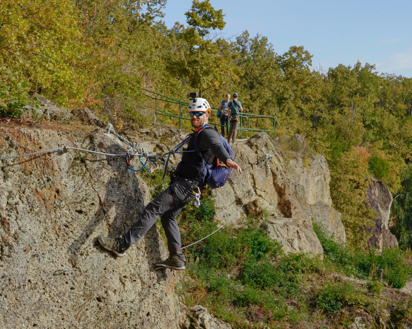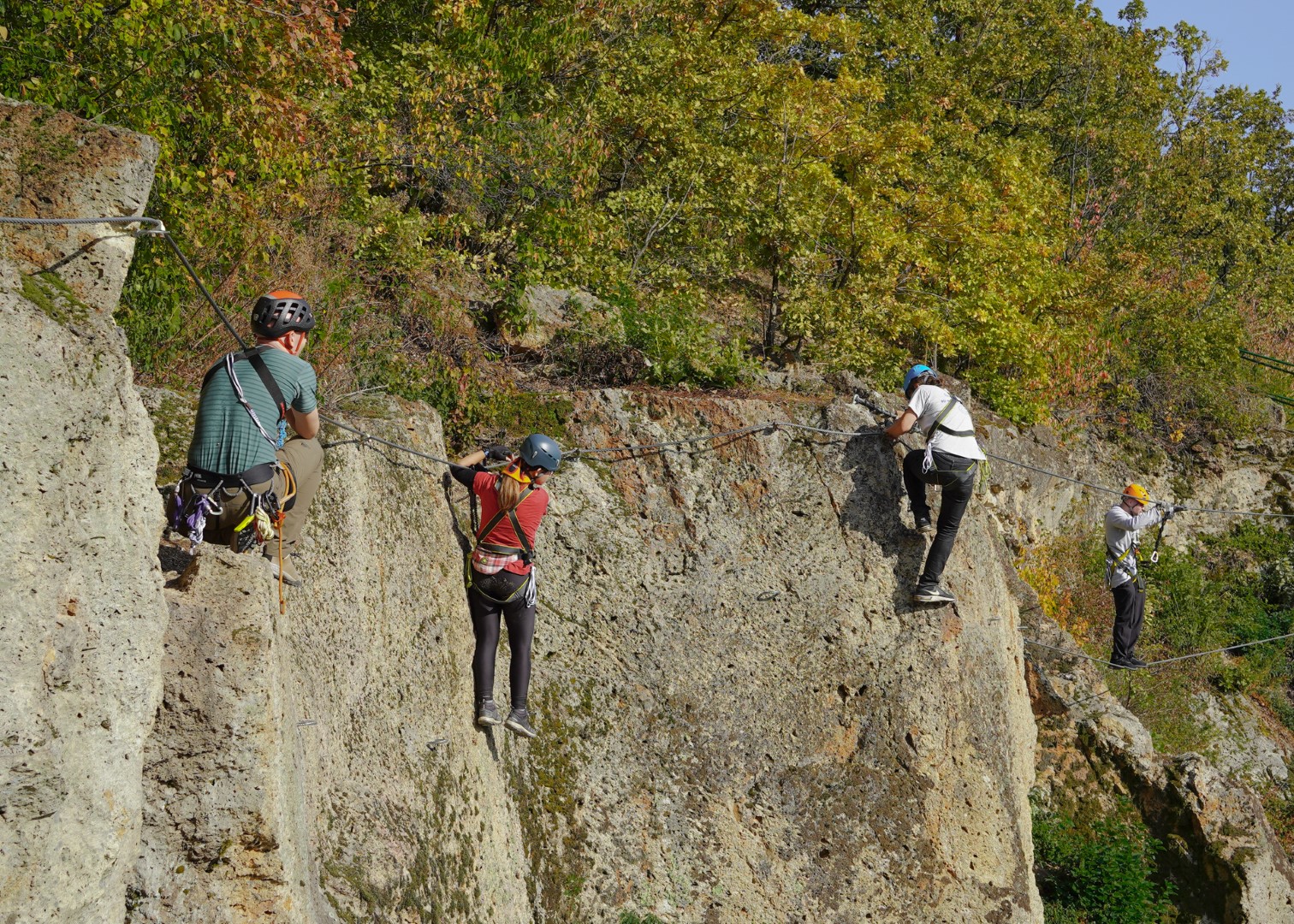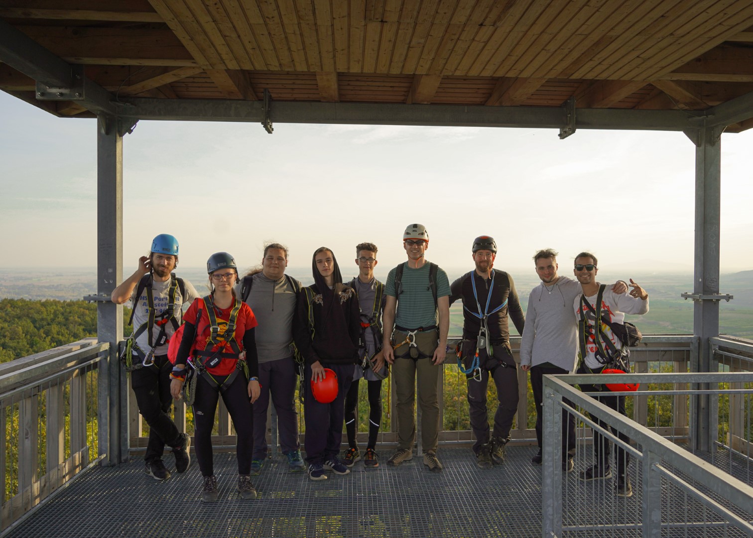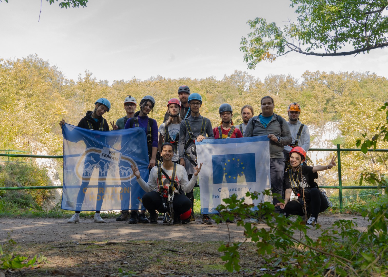 In the heart of Megyer-Hegyi Tengerszem, Hungary, a group of outdoor enthusiasts geared up for a day of Via Ferrata fun, part of the Operation Hook 2 project.