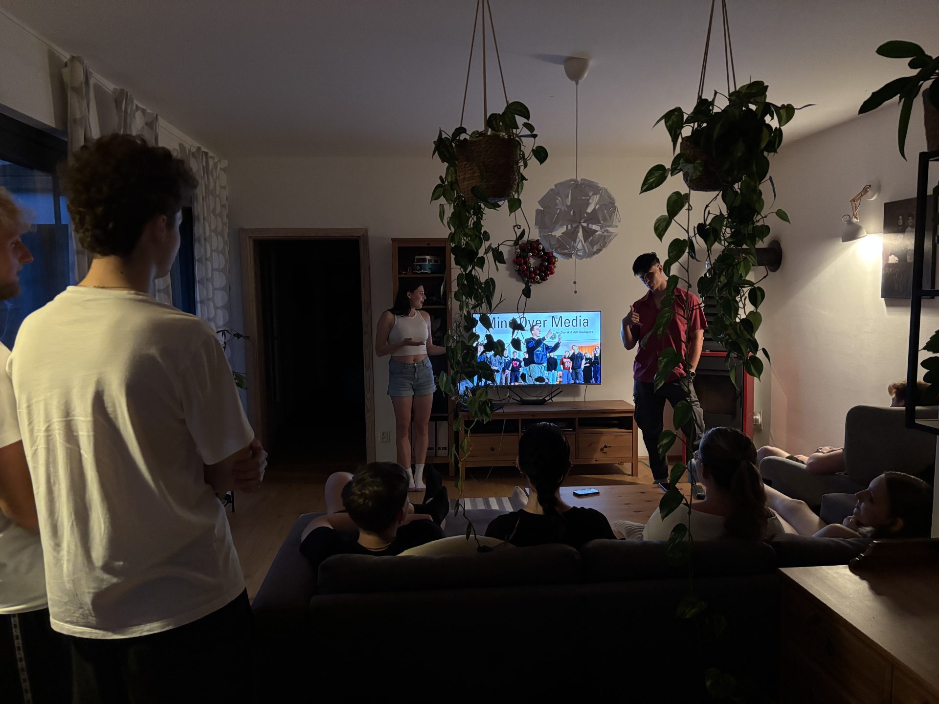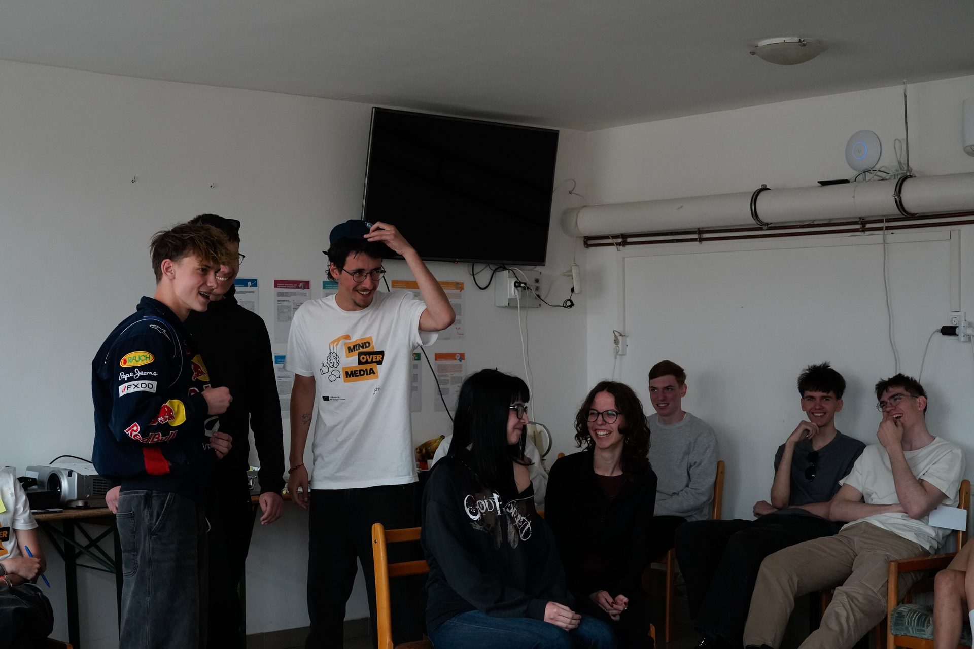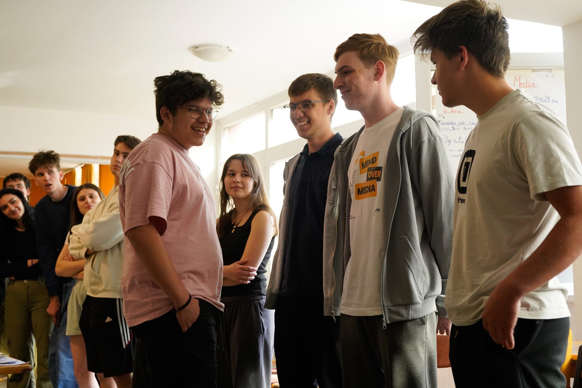 Maxmilian presented the Mind Over Media youth exchange at Arcibiskupské Gymnázium V Kroměříži to 16 classmates, sharing how E29 activities work, what a typical day looks like, and how learning differs from school.