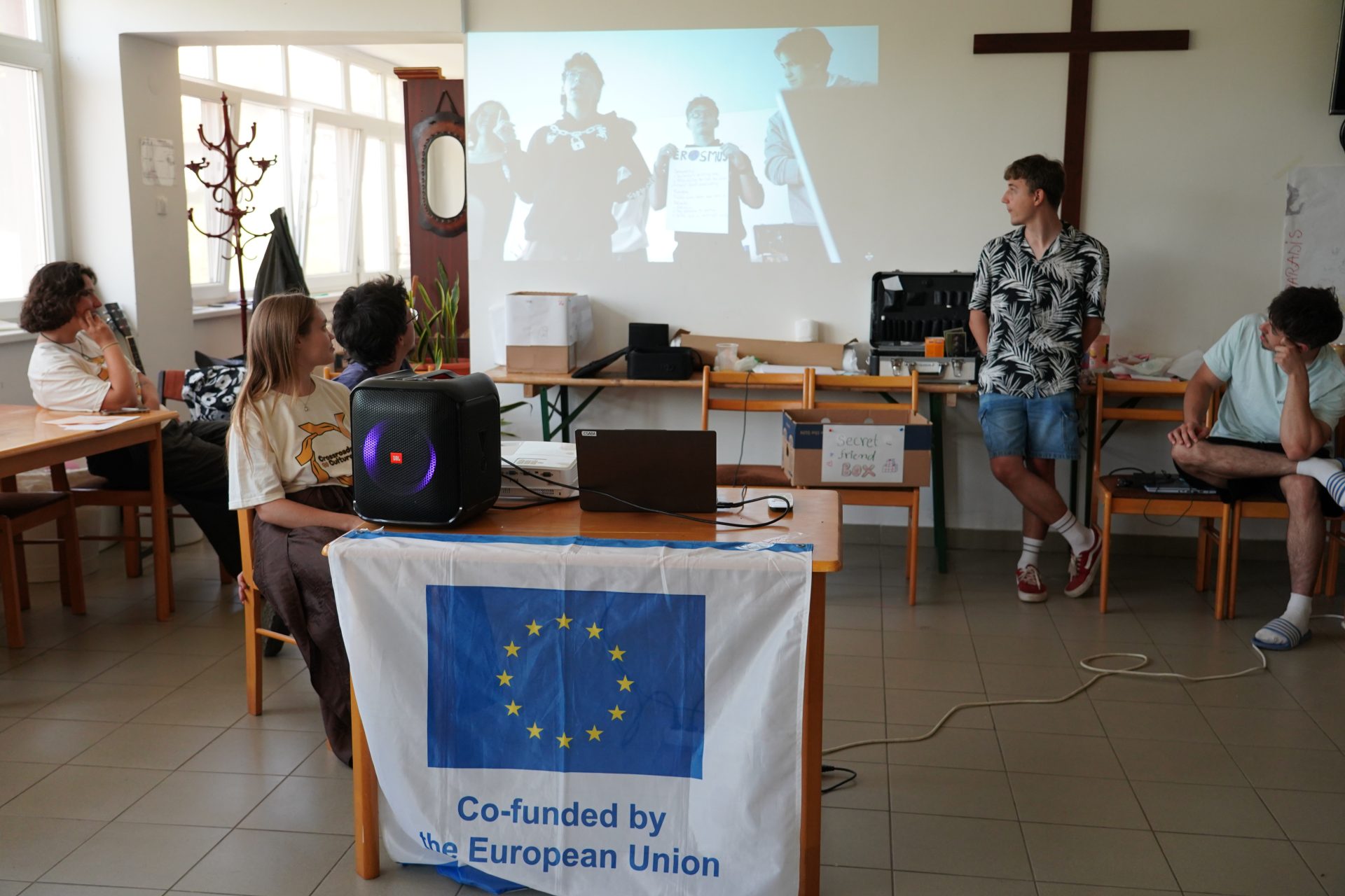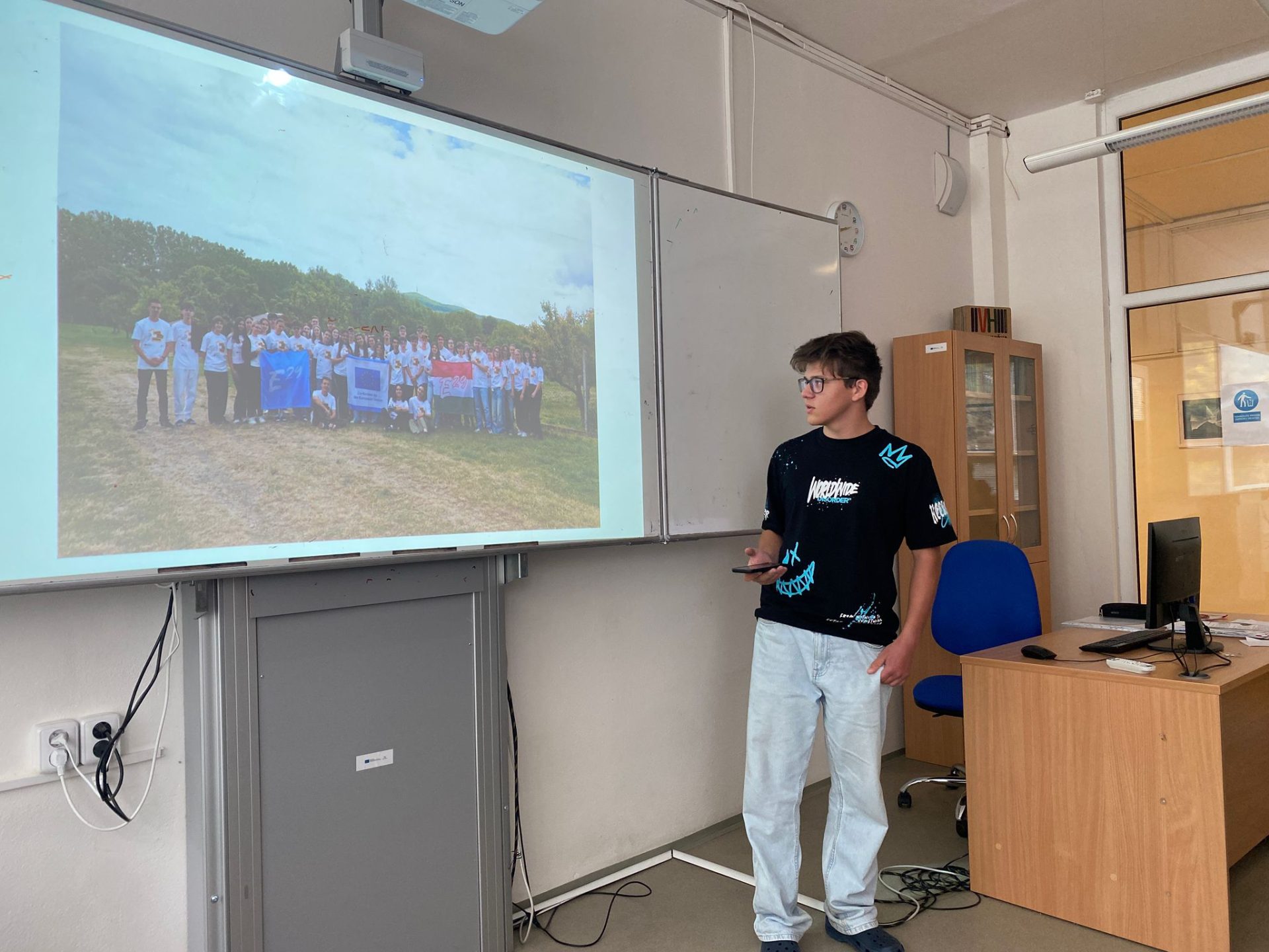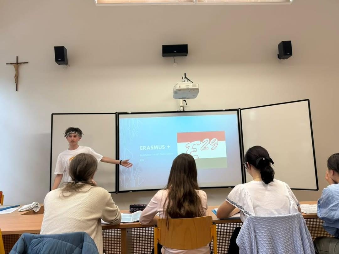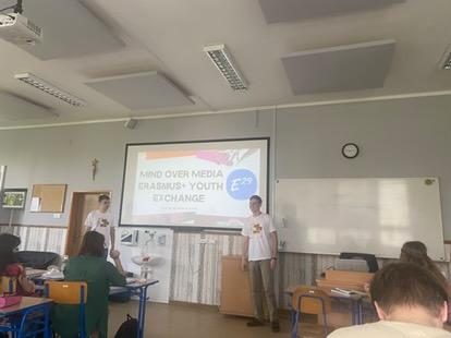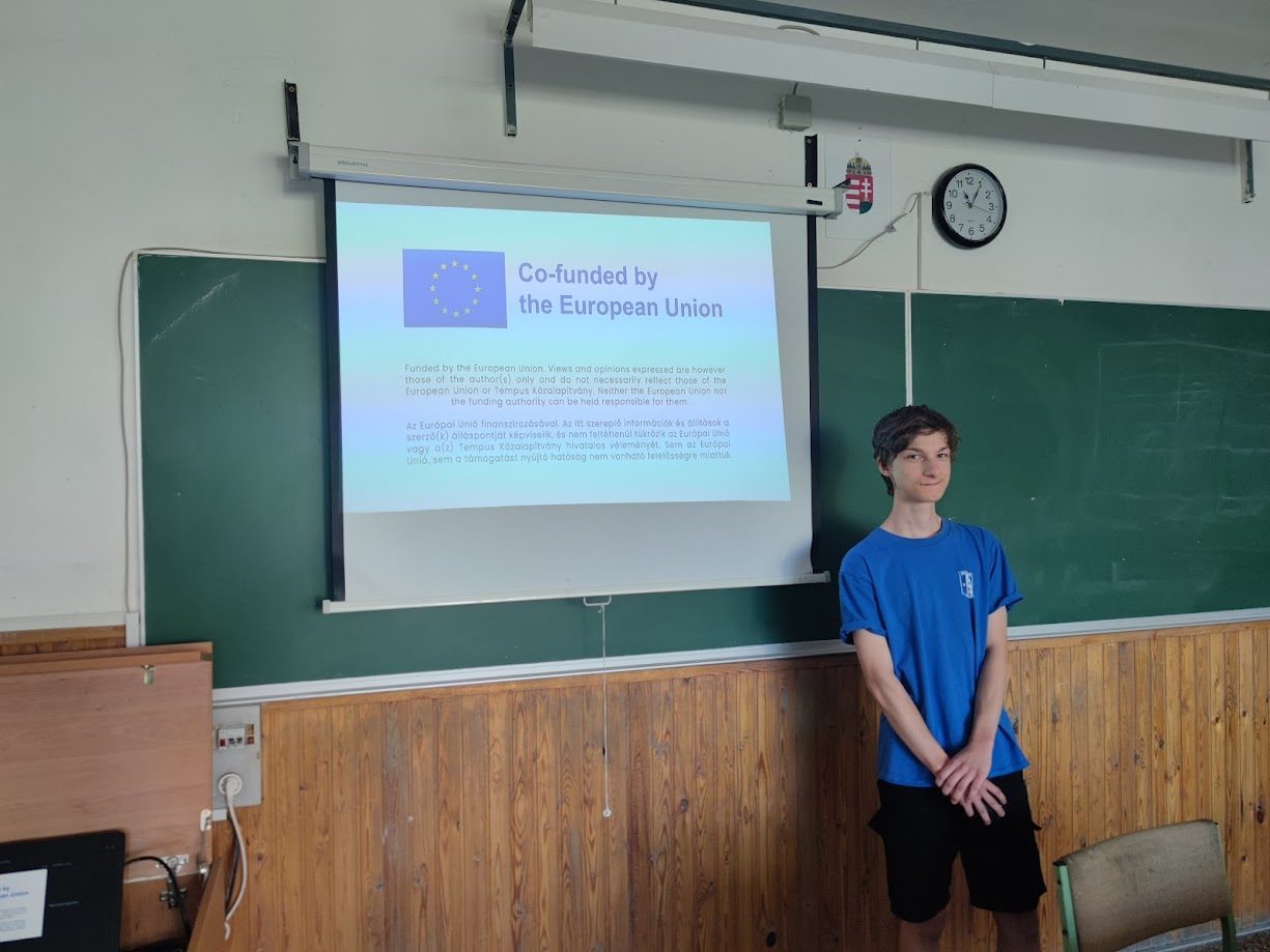 Roland gave a presentation at BMSZC Trefort Ágoston Két Tanítási Nyelvű Technikum to 30 classmates, where he explained how Erasmus+ youth exchanges work with E29 and shared the final video of the Mind Over Media activity.