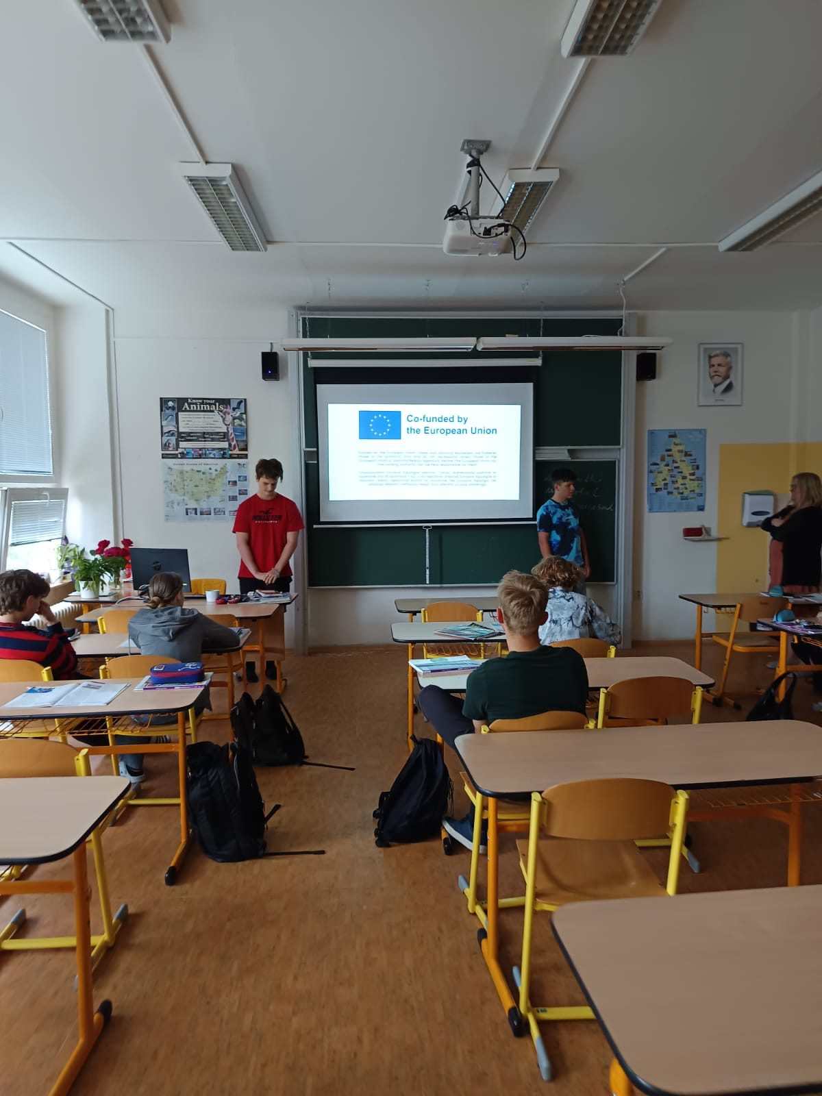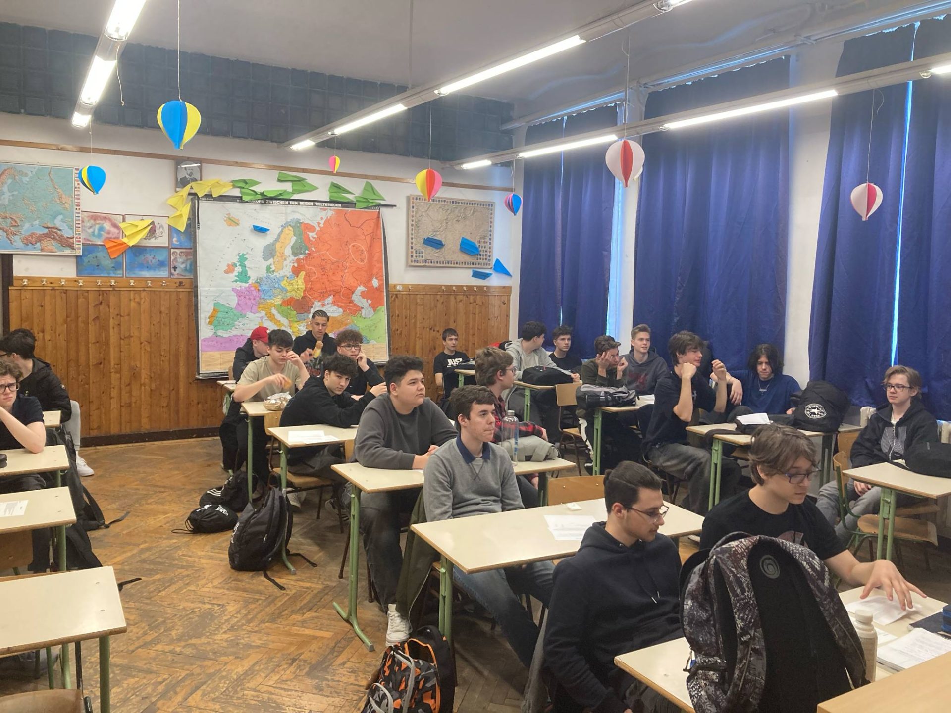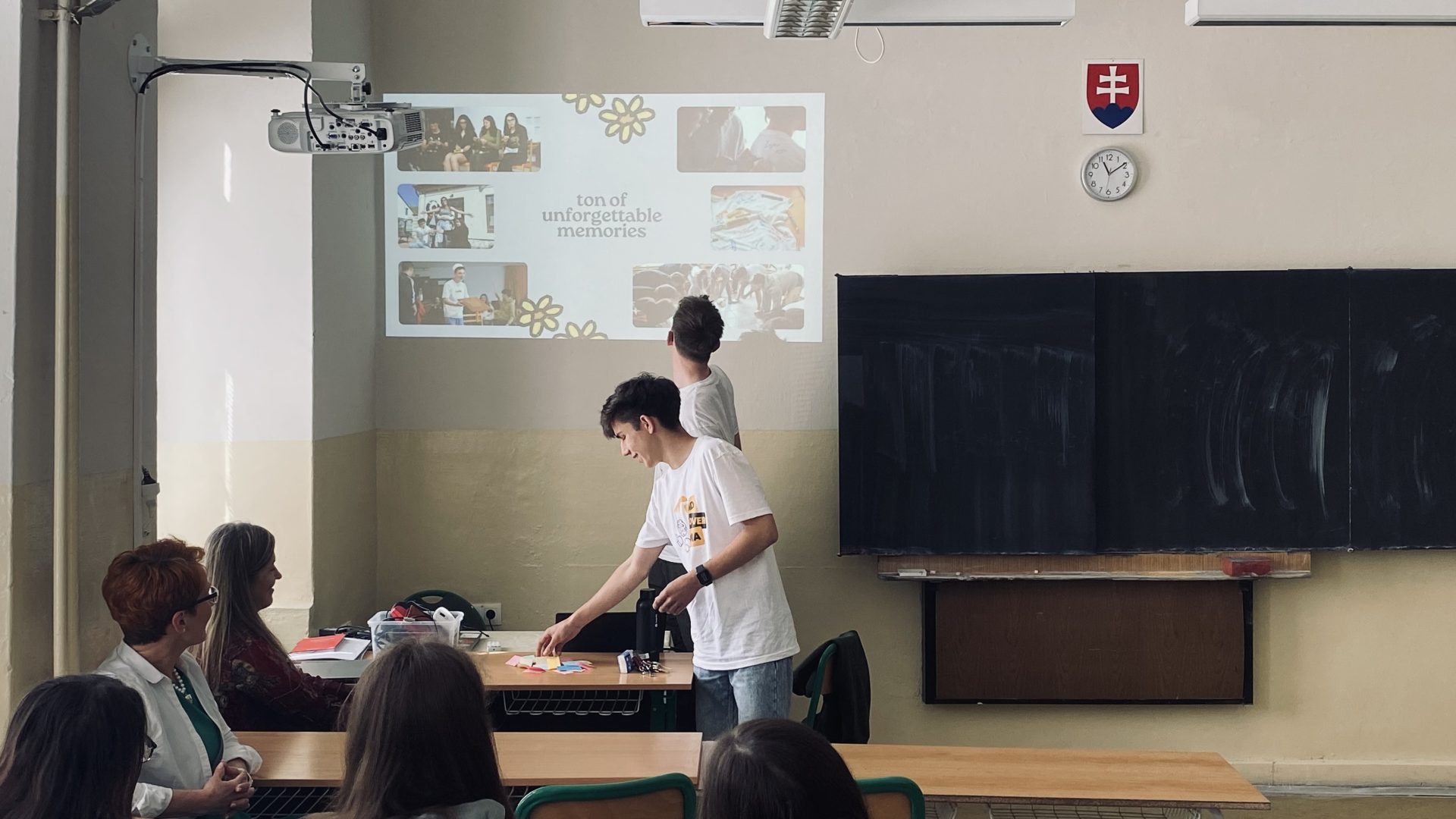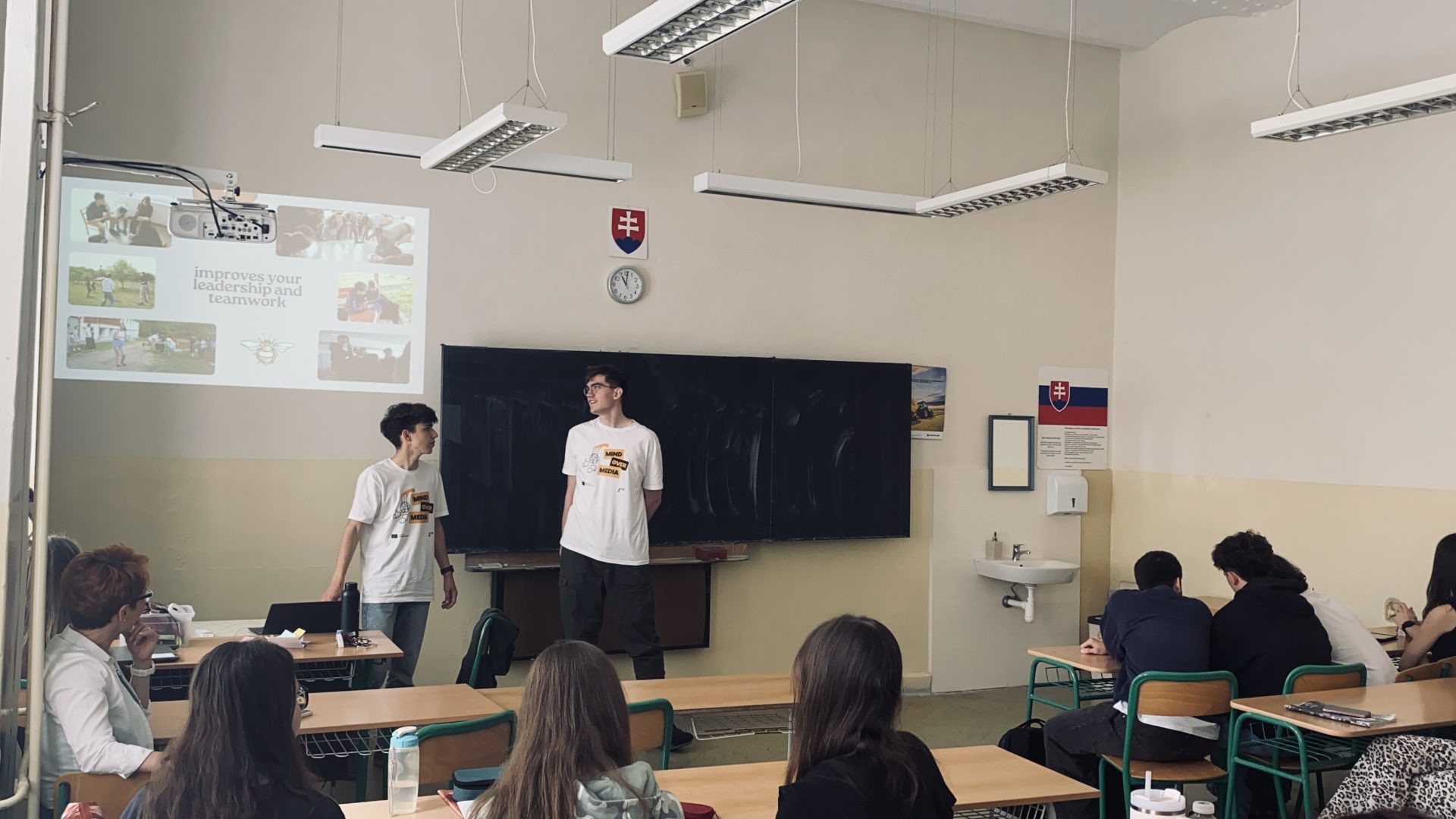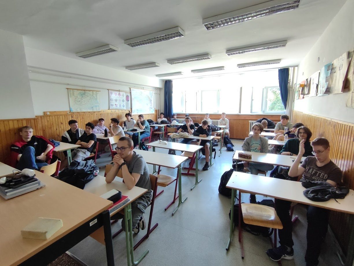 Jakub and Jachym presented to 17 classmates at Sportovní Gymnázium, sharing their experience and explaining how the activities and sessions worked.