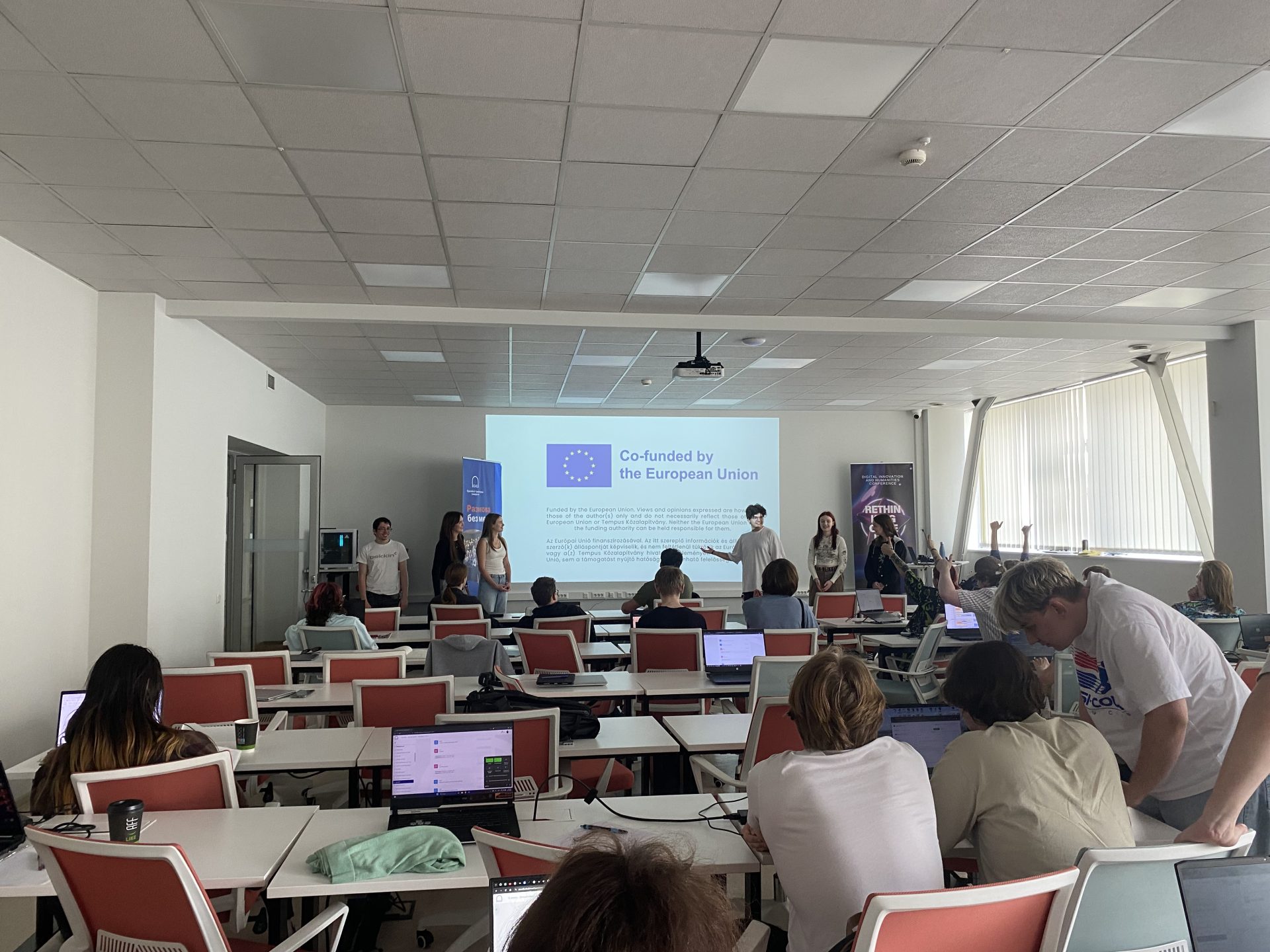 Csenge and Martin gave a presentation at BMSZC Trefort Ágoston Két Tanítási Nyelvű Technikum to 28 classmates, introducing the Erasmus+ Youth Exchange and sharing insights from their participation in the activity.