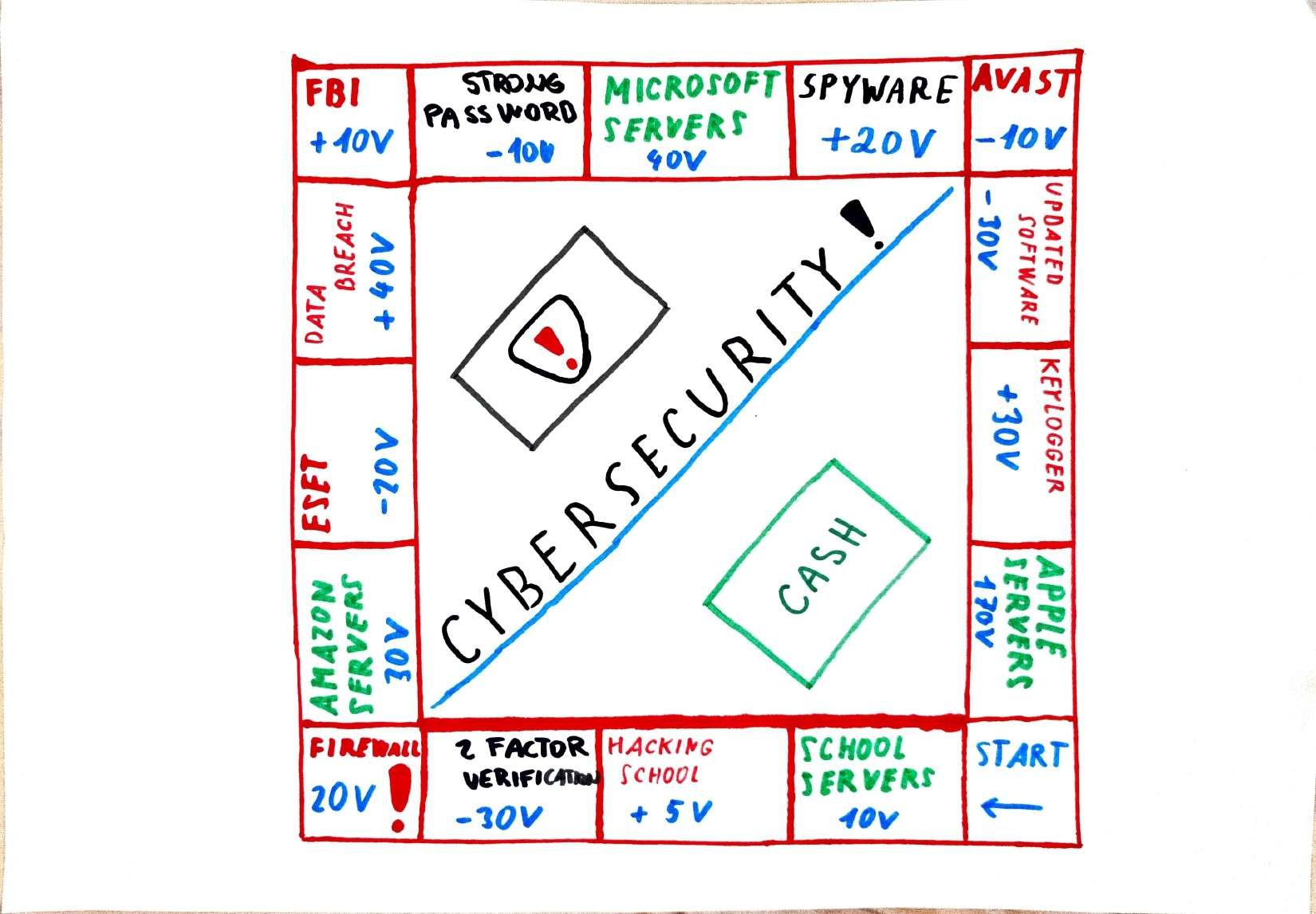 Participants formed international teams to design board games about online security using their knowledge from previous sessions.