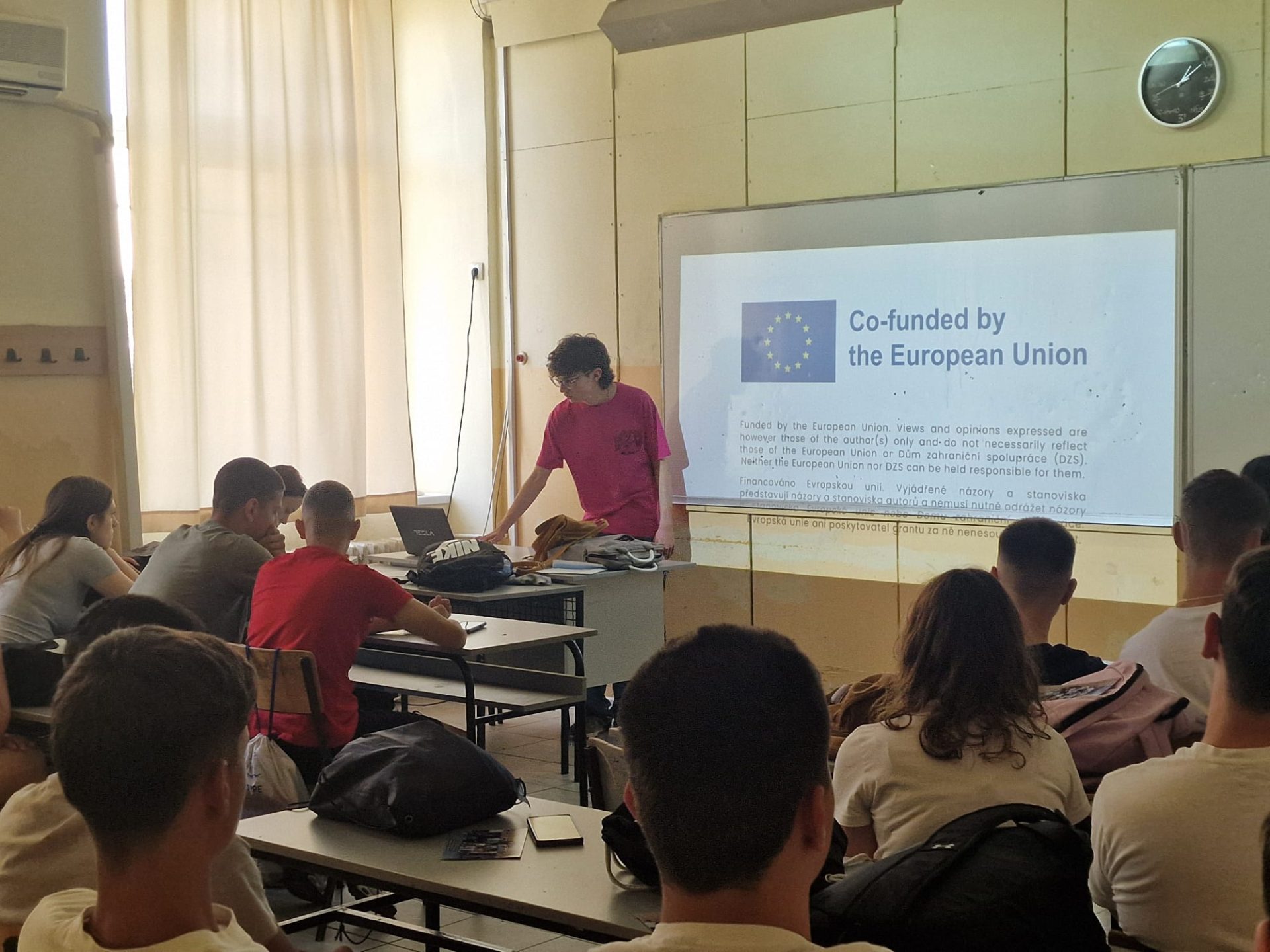 Lazar gave a presentation at ETS Nikola Tesla to about 30 classmates, sharing the youth exchange’s learning outcomes, introducing E29 and its opportunities for young Europeans, and illustrating everything with personal stories from his experience.