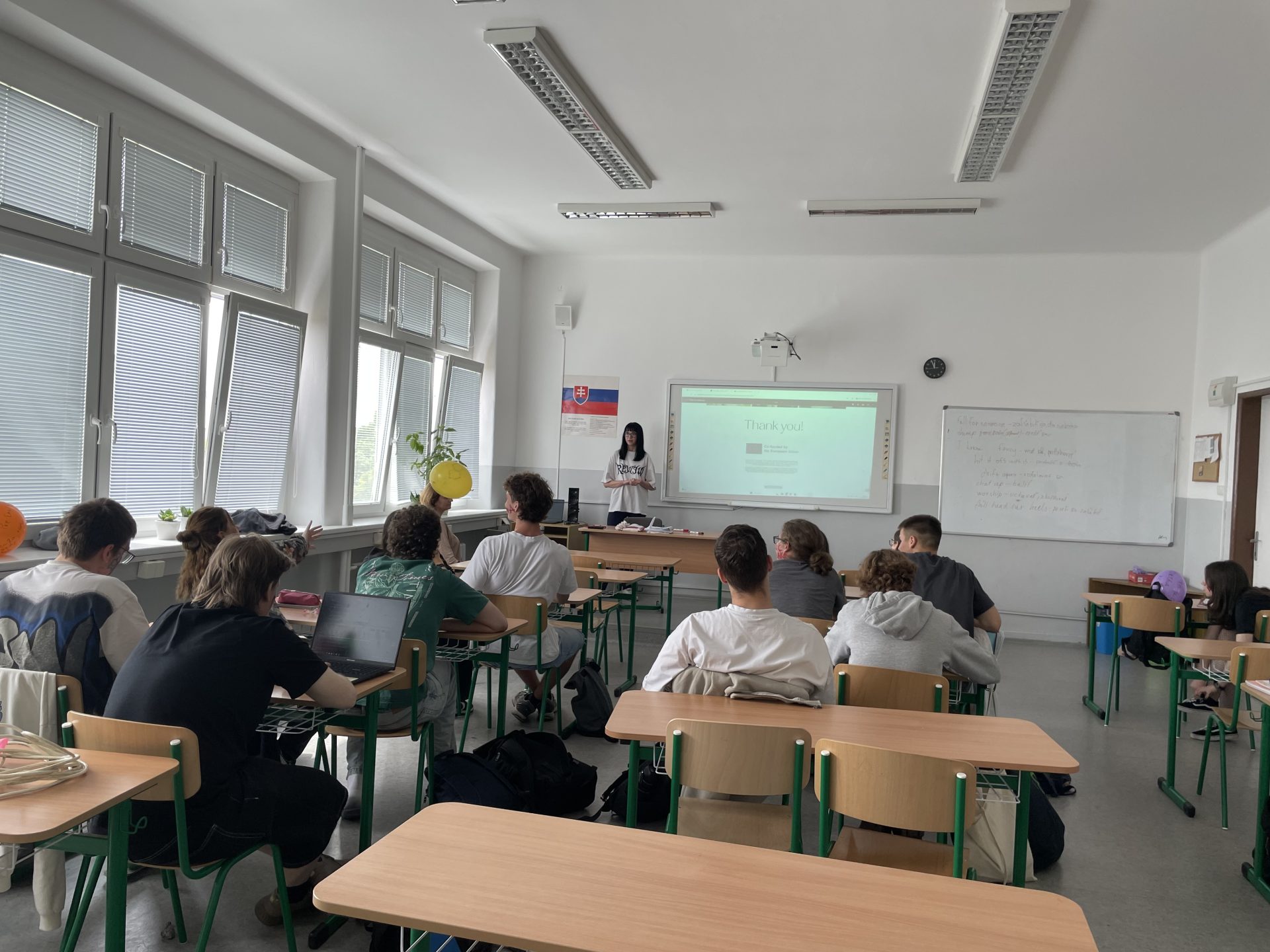 Svetlana gave a presentation at Gymnázium Karola Štúra Modra to 13 classmates, where she shared her experience in the activity, what she enjoyed most, introduced E29, and explained who can apply.