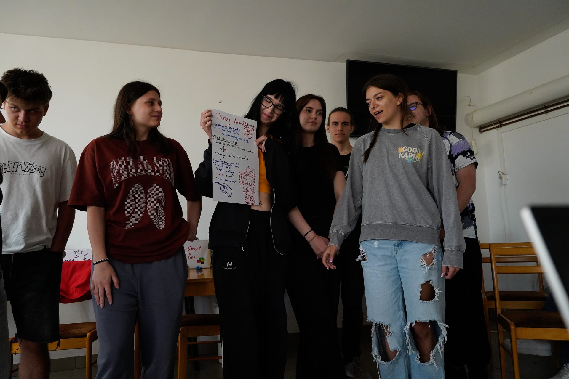 In this session, participants split into six teams to research different online threats—such as ransomware, spyware, and trojans—focusing on how these viruses spread, their impact, and ways to defend against them.