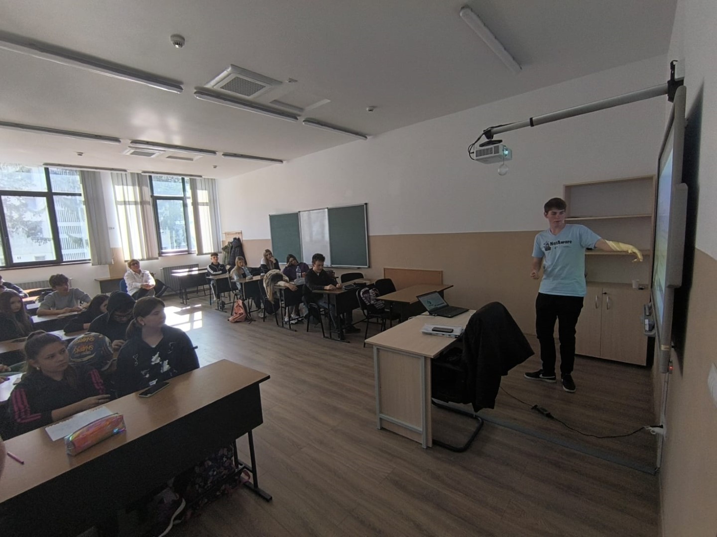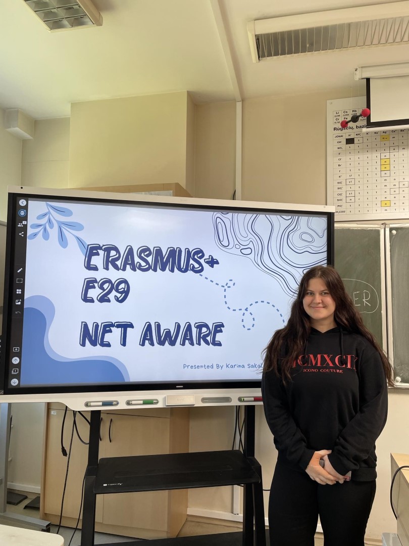 Karina Sakalauskaite made a presentation in Vilniaus Abraomo Kulviečio klasikinė gimnazija to her classmates (20 people), including NetAware and E29 opportunities as well.
