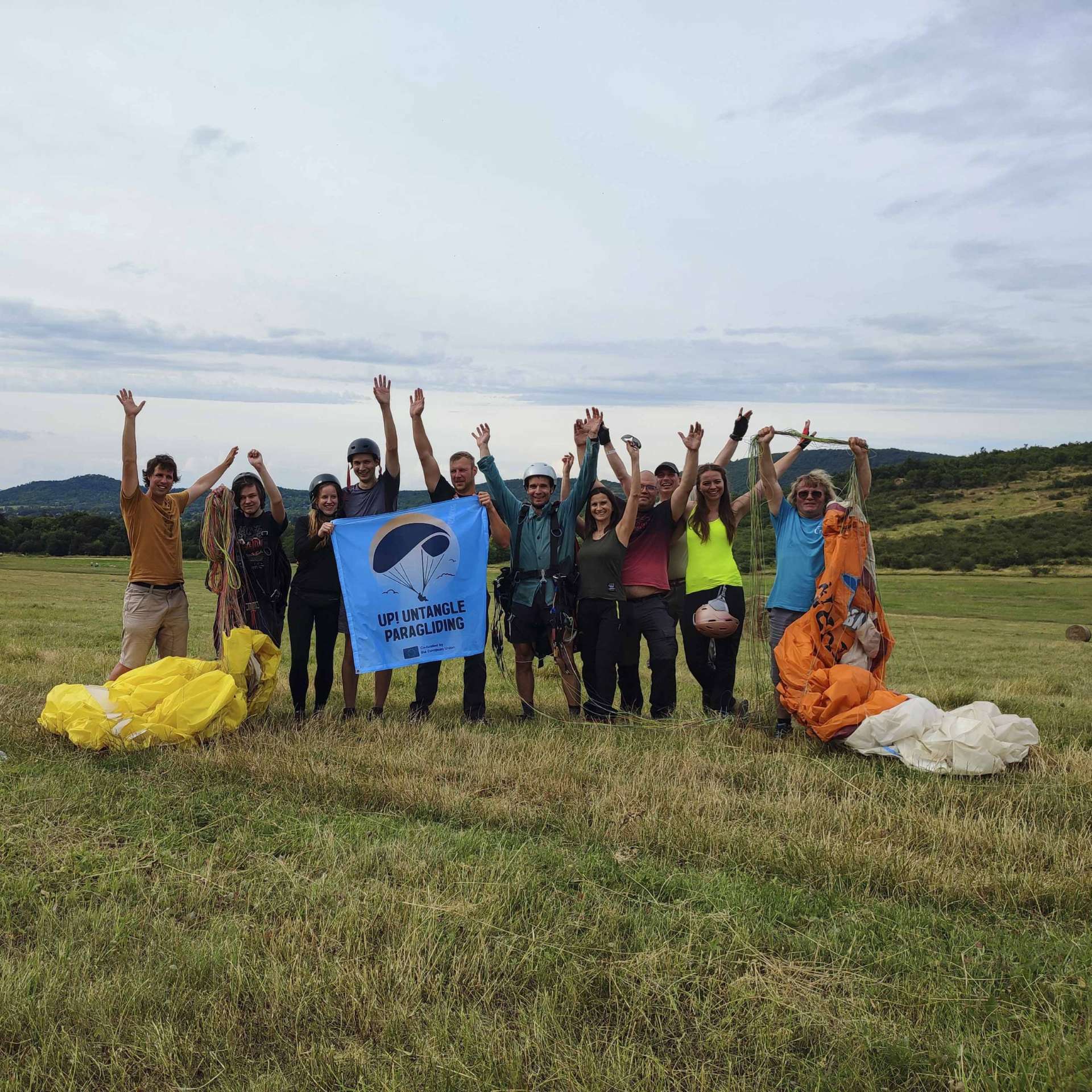 First, participants embarked on a journey that started with a ride to a paragliding field in the corners of Buda. After some informal introduction and theoretical insights about paragliding, the participants untangled their paragliding ropes and geared up for their airborne experience: Running to catch the wind and trying to lift off. One of the highlights was witnessing the participants’ determination as they tirelessly climbed back up the hill for the next attempt.