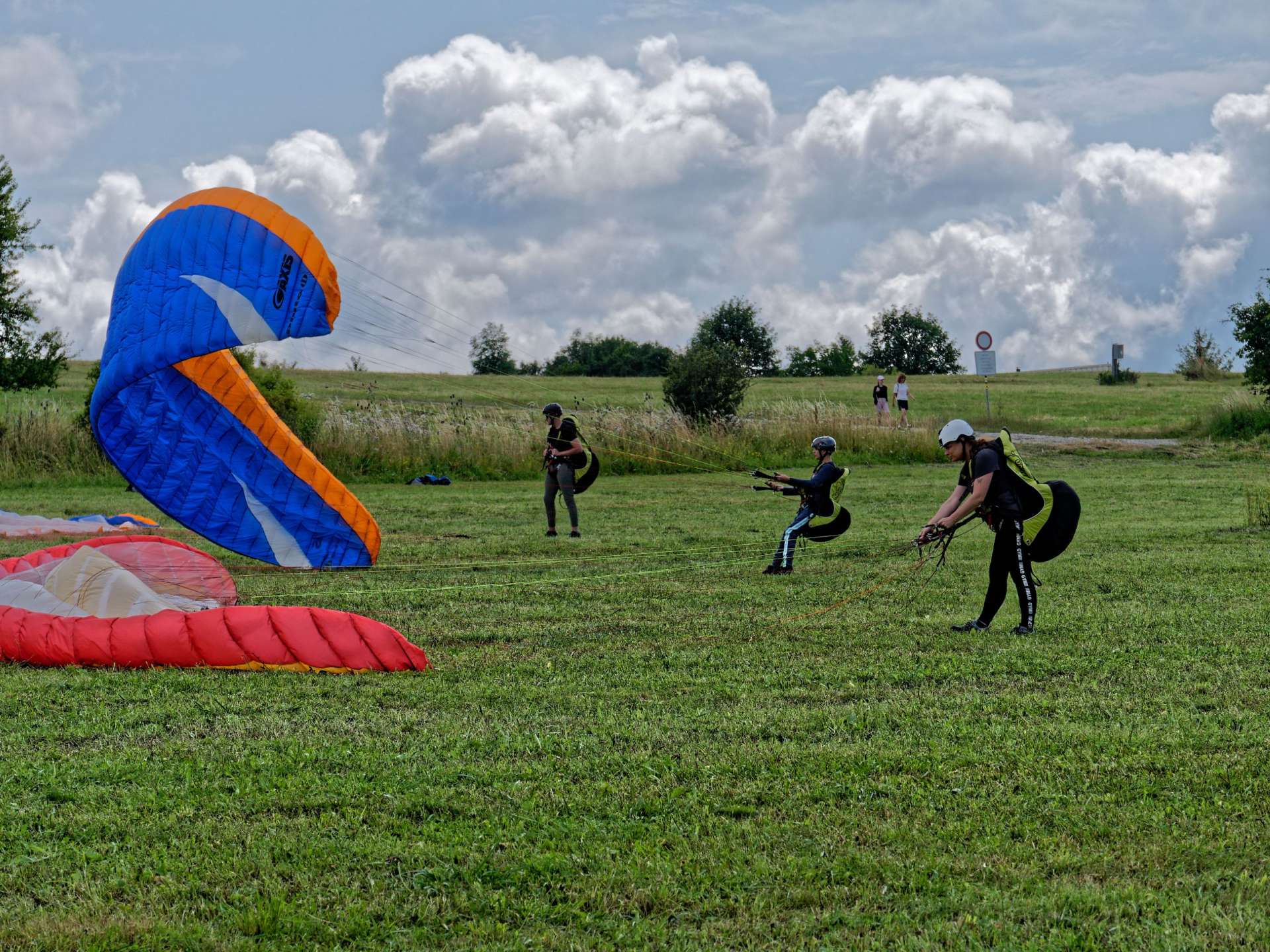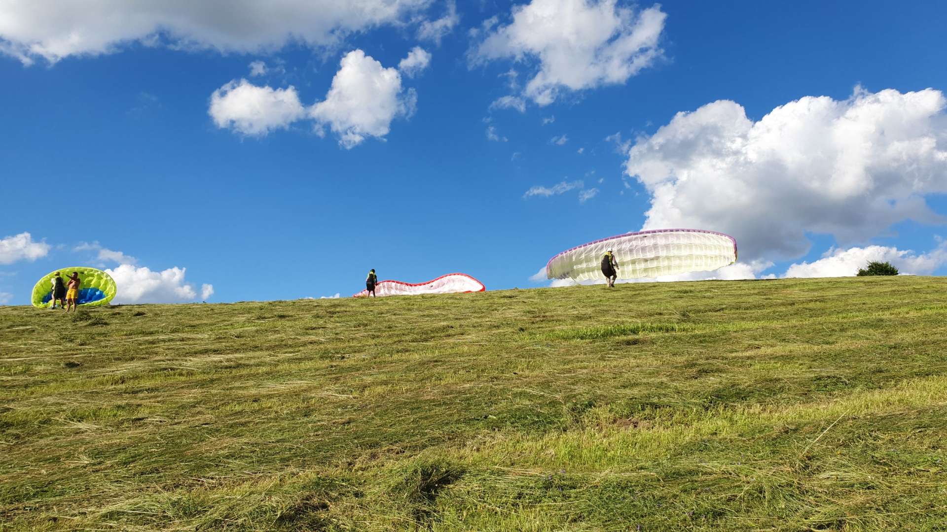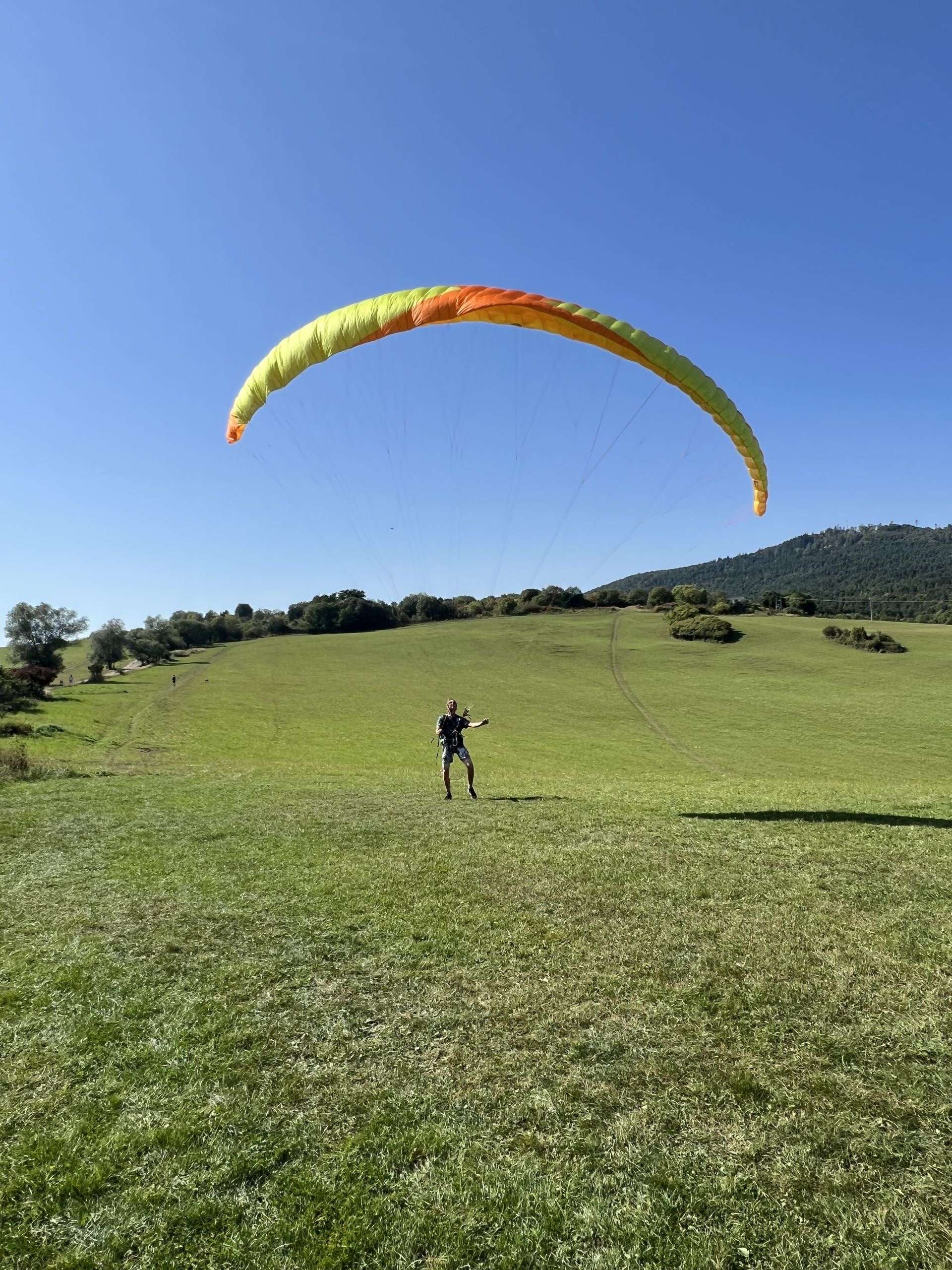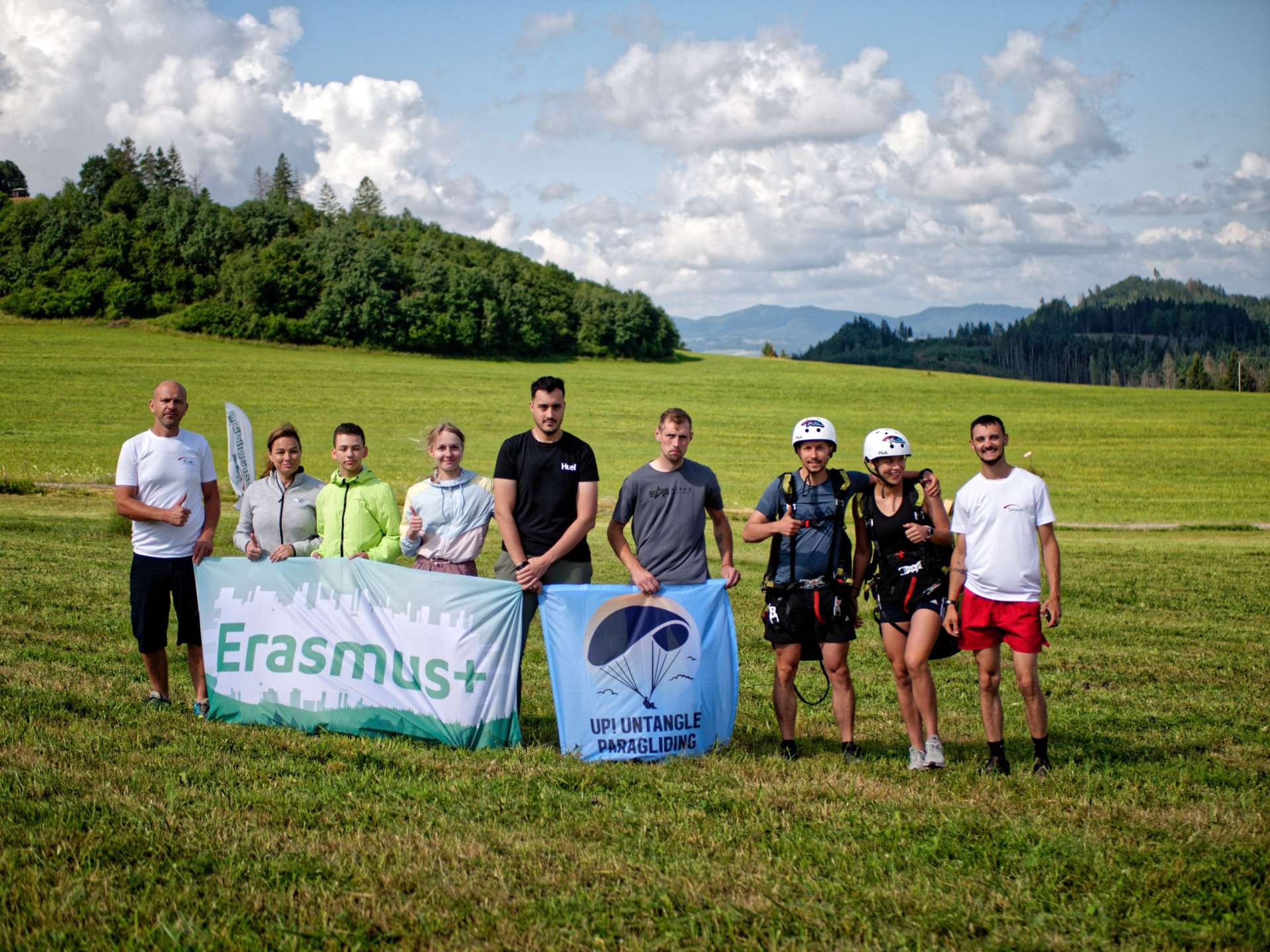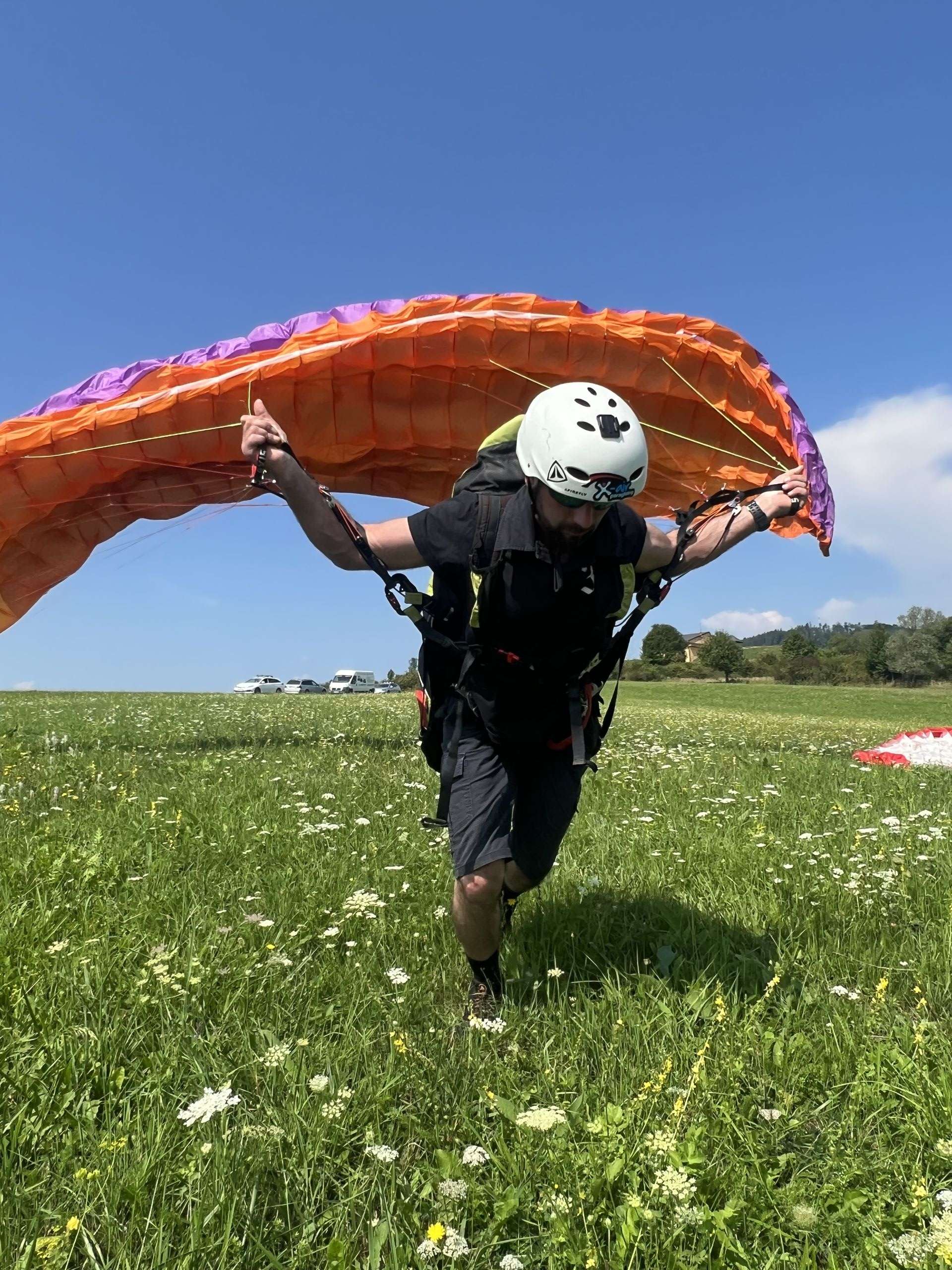 After the safety part the time has finally come to put on their gears and get ready to spring away from the ground. As they were running down from the hill trying to fly for a few meters, joy and liberation could be seen on their faces. Their laughter and the colorful parachutes painted the sky with the happiness of a day filled with new adventures and shared success.