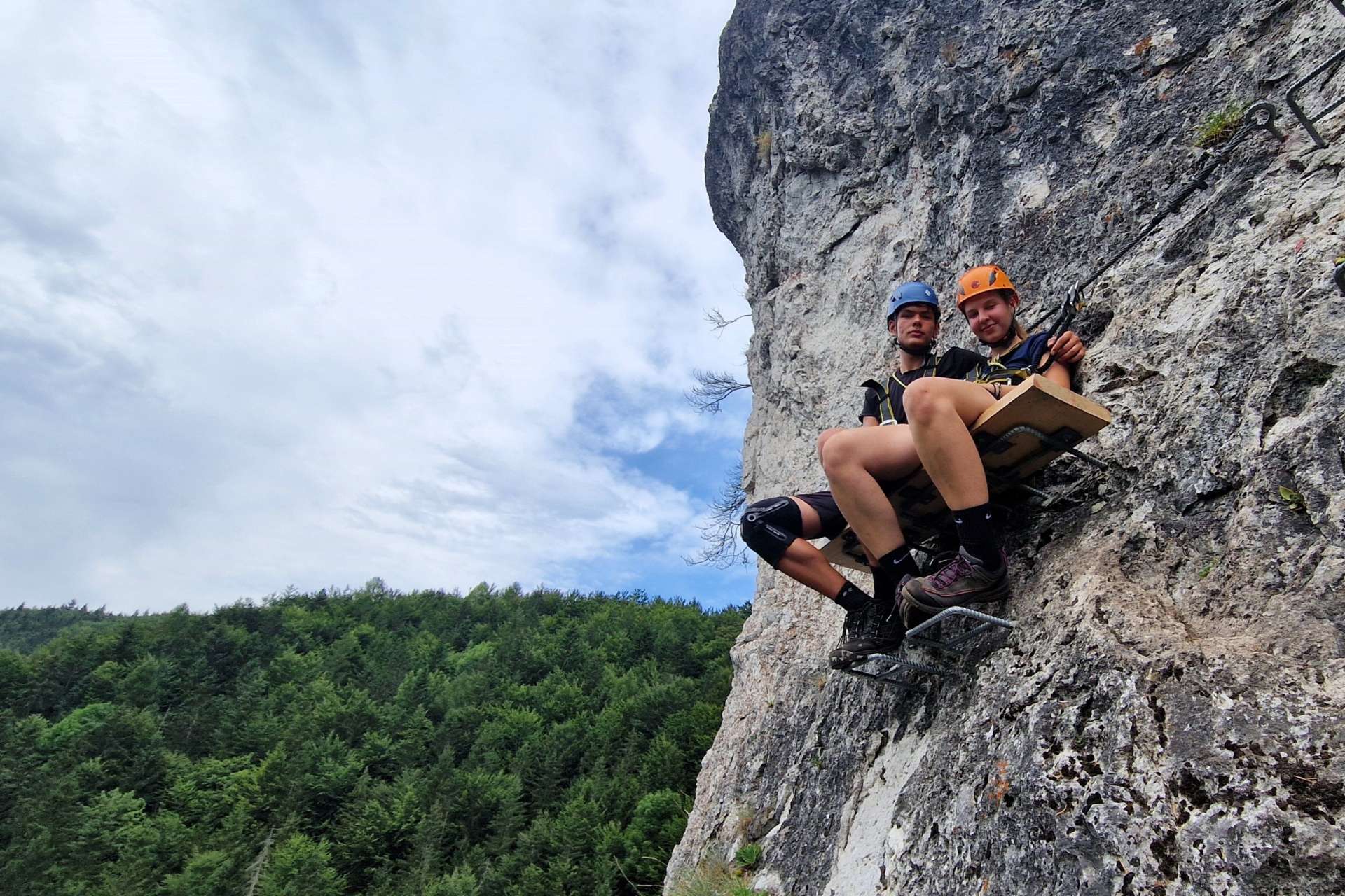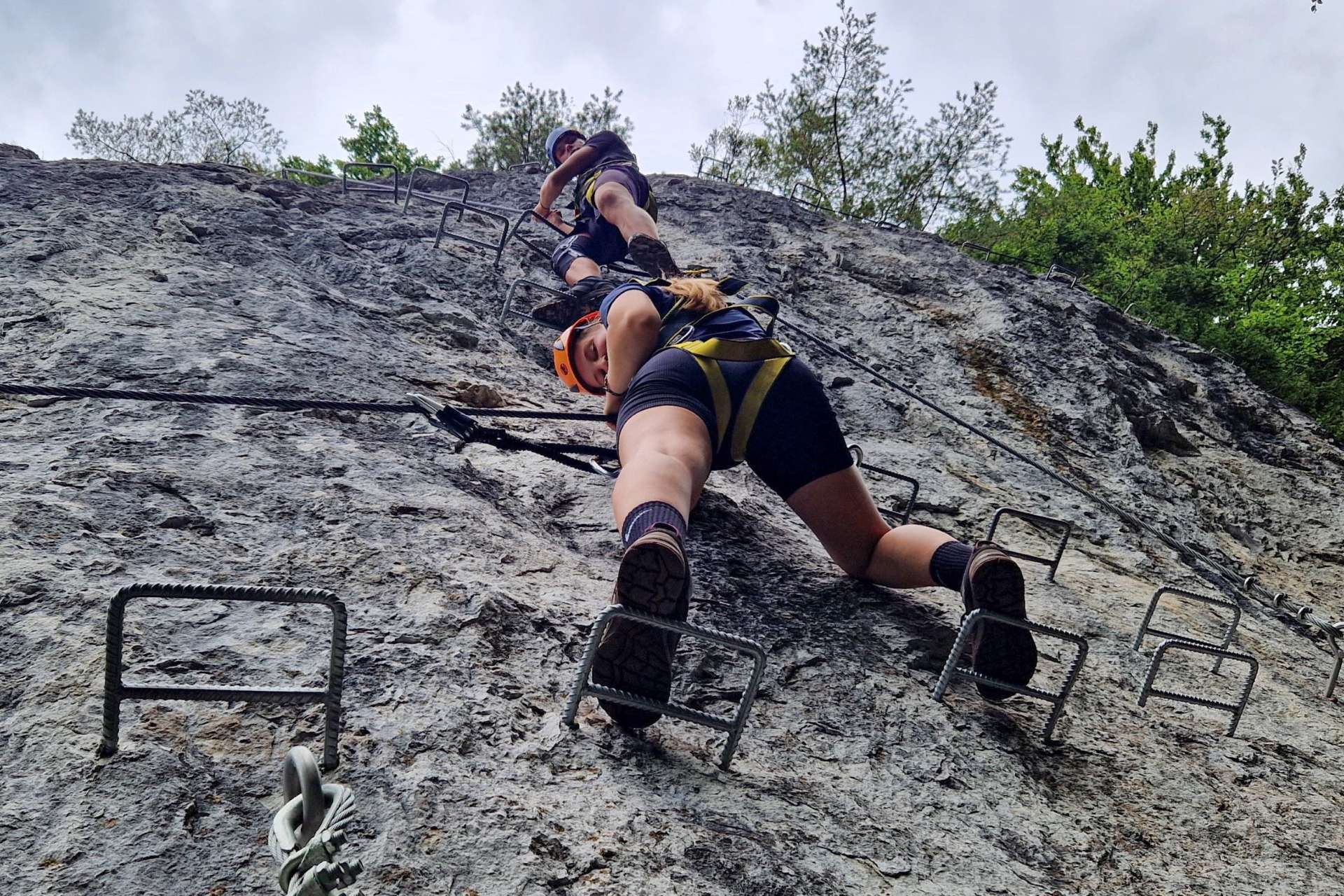 The via ferrata adventure took place in the beautiful natural environment of Veľká Fatra. First we practiced some belaying techniques and knots, for different situations on the via ferrata, but then we also had an amazing and fascinating via ferrata with different difficulties. The guide of our organization Klub 86, Gábor emphasized the need for proper use of harnesses, helmets and other safety equipment so that everyone is well prepared for the ascent. During the activity, the guide shared important tips with the participants on what to do in case of an accident or emergency. They covered basic Via Ferrata safety rules, communication signals and basic first aid techniques, giving adventurers important knowledge that can help save lives in difficult situations.