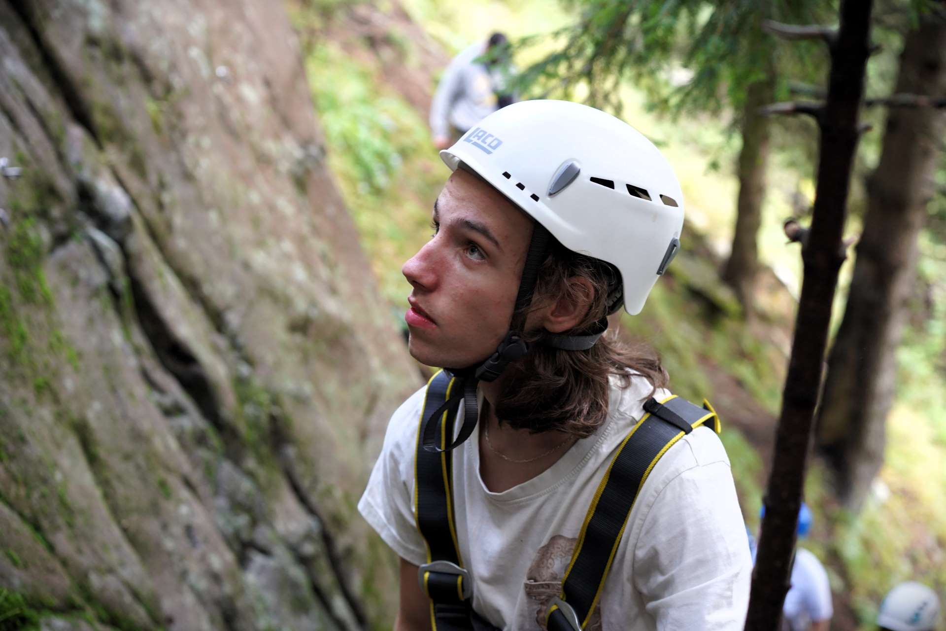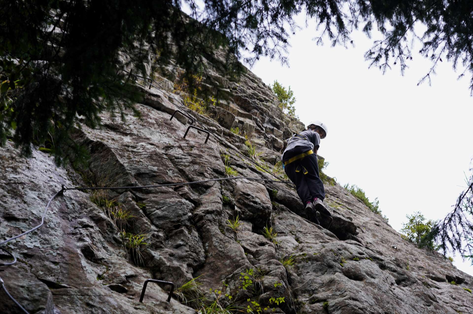 To start, Andreea and Pavel introduced the equipment and covered safety protocols. They demonstrated essential knots, like the double fisherman’s and prusik, to ensure each participant felt secure before the climb. Then, to meet everyone’s skill levels, they split the group. More confident participants started the route first, while others practiced knot-tying at the base with guidance.