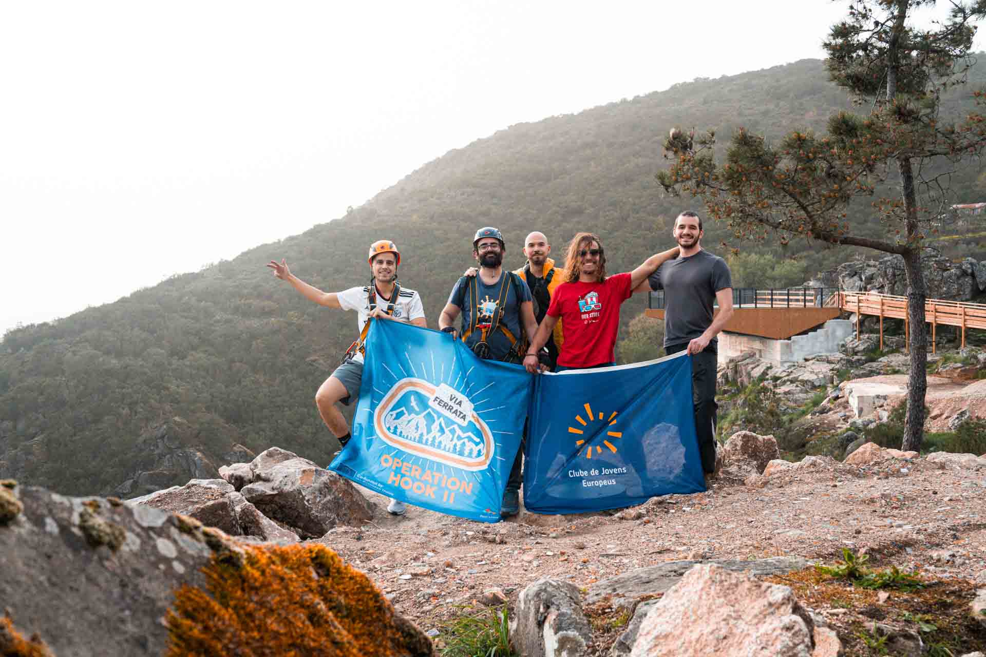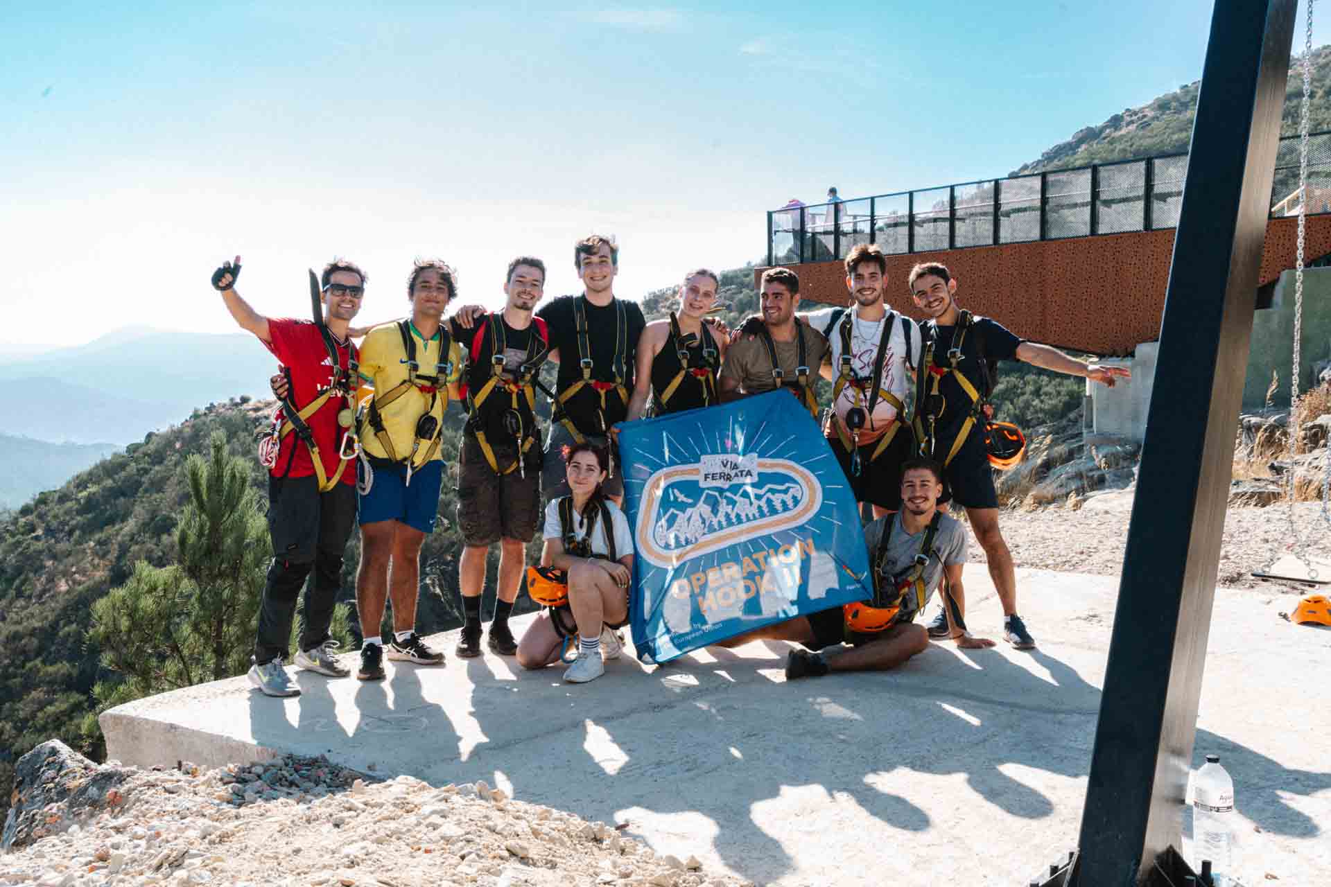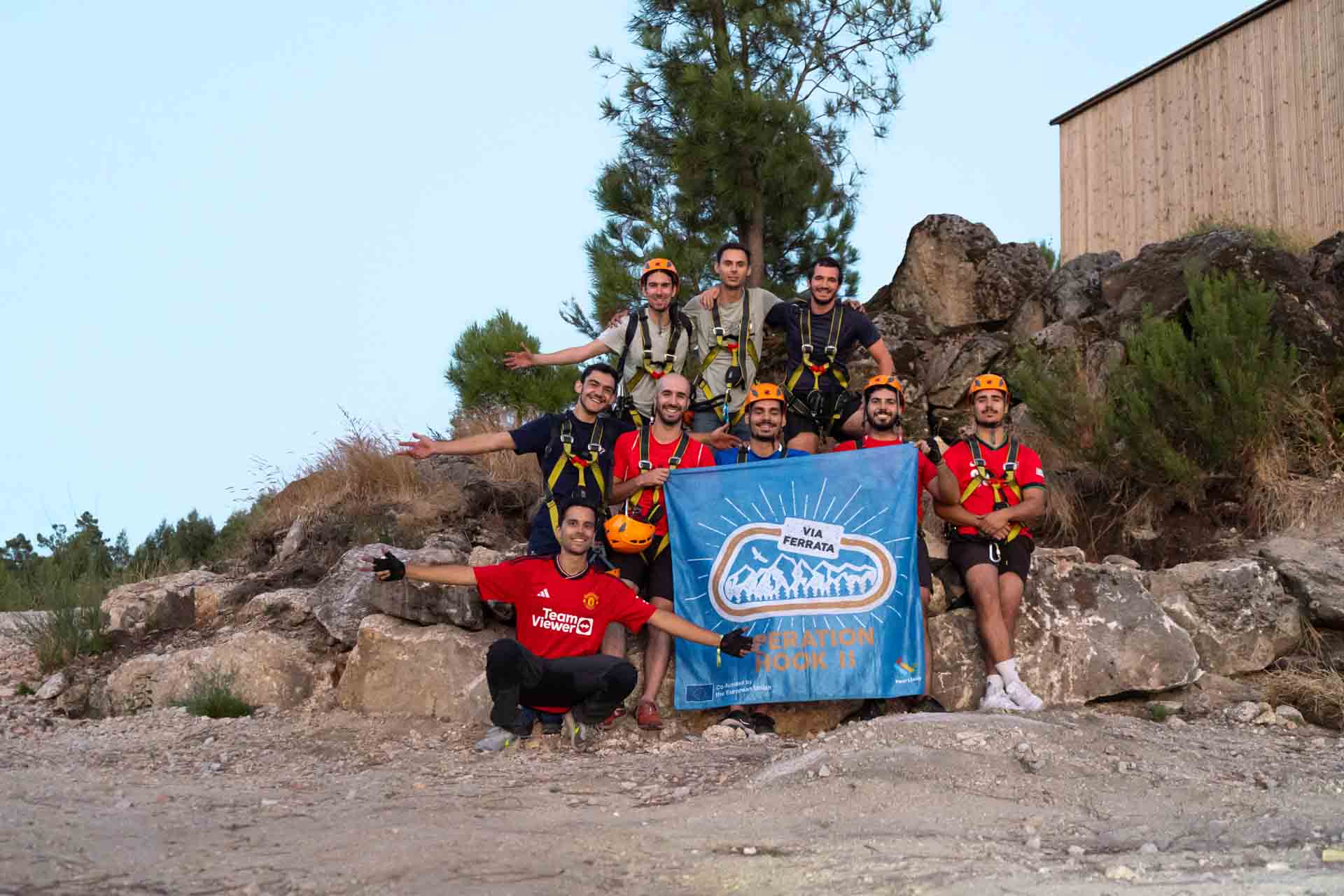 In September 2024, we returned to Pombeira with a larger group of participants, most of whom were trying via ferrata for the first time. Divided into two groups, each arriving at different times, both groups had its own dedicated briefing to cover the basics of the equipment, safety techniques, and essential skills like using the resting harness, crafting rope steps, and climbing with the prusik loop. Participants then set off along the via ferrata, fully equipped and confident, while also enjoying the route’s range of bridges and anchored sections. This day highlighted the versatility of Pombeira’s via ferrata, making it feel like an adventurous playground where each climber could explore safely and freely. The day was a huge success, and everyone left with a strong interest in future adventures and new skills they could apply in the next climbing experience.